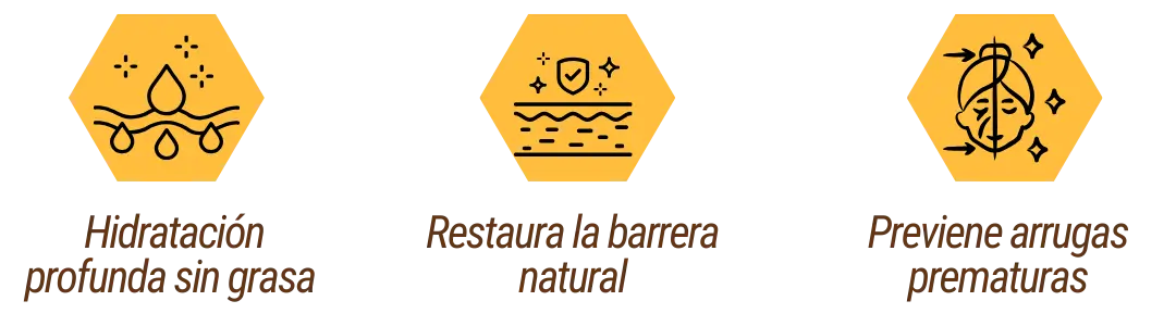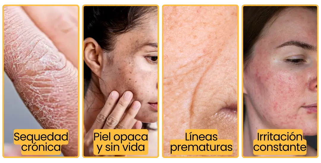 No es tu piel la que falla, son los químicos que solo tapan el problema. Con cada aplicación la debilitan más, dejándola reseca y apagada. Lo que tu piel realmente necesita es nutrición viva: sebo, miel y aceites naturales que devuelven su vitalidad.
